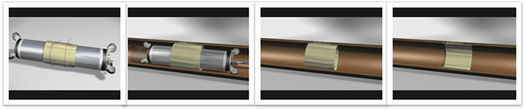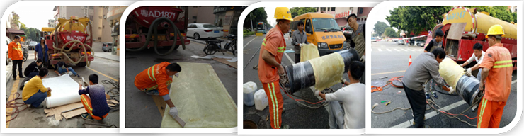 CIPP点位局部修复技术主要用于修复局部破损管道。施工时,将短衬管包扎在一个可膨胀的滚筒上,用绞车拉入或用cctv管道机器人导入待修复的部位,然后利用压气使滚筒膨胀,与旧管紧密贴合,待树脂固化后(可在常温下固化,或利用热水或蒸汽加速固化过程),释放压气使滚筒收缩并收回。 CIPP点位局部修复技术包含一个加强衬管,加强衬管由两层玻璃纤维编制粗纱和一层位于两者之间的聚酯层构成,将三层材料用聚酯线以25mm的间距按锯齿形缝合在一起。在现场切割衬管,并用环氧树脂浸泡,以适应就管道的特殊要求。衬管材料吸附充足的树脂,当压缩衬层时,树脂能填充凹凸不平的管壁、封堵裂隙,因此能在旧管和衬层间形成良好的密封层。